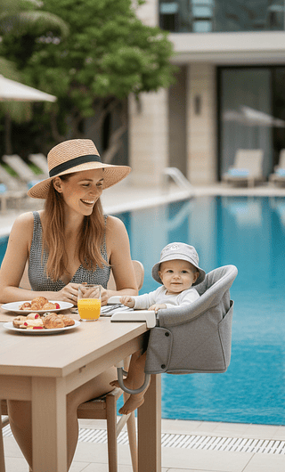 La silla portátil Bawui se engancha a la mesa y te salva en salidas, visitas y paseos.